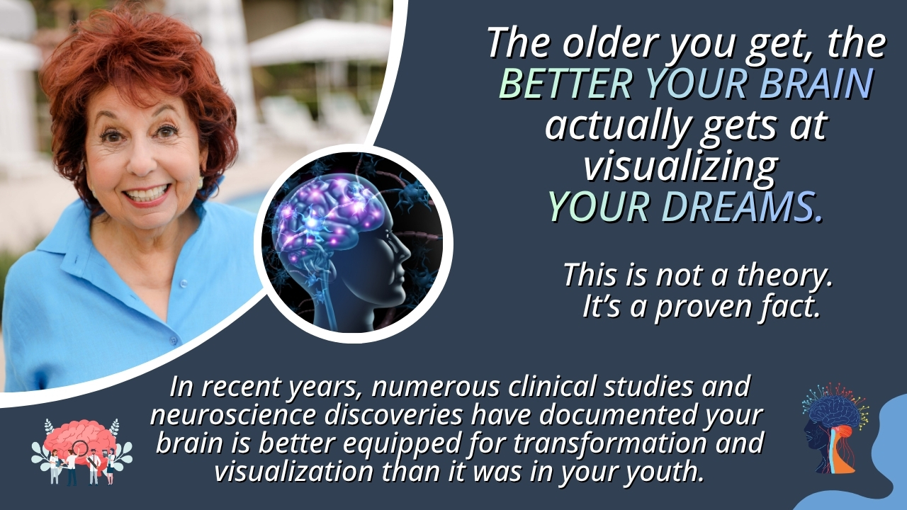 Based on my newest and most acclaimed online courses yet, everything you will discover in the masterclass is accessible and achievable, no matter your age, background, or life experiences. And it is backed by the latest neuroscience discoveries, which confirm that your brain after 50 is wired for transformation.