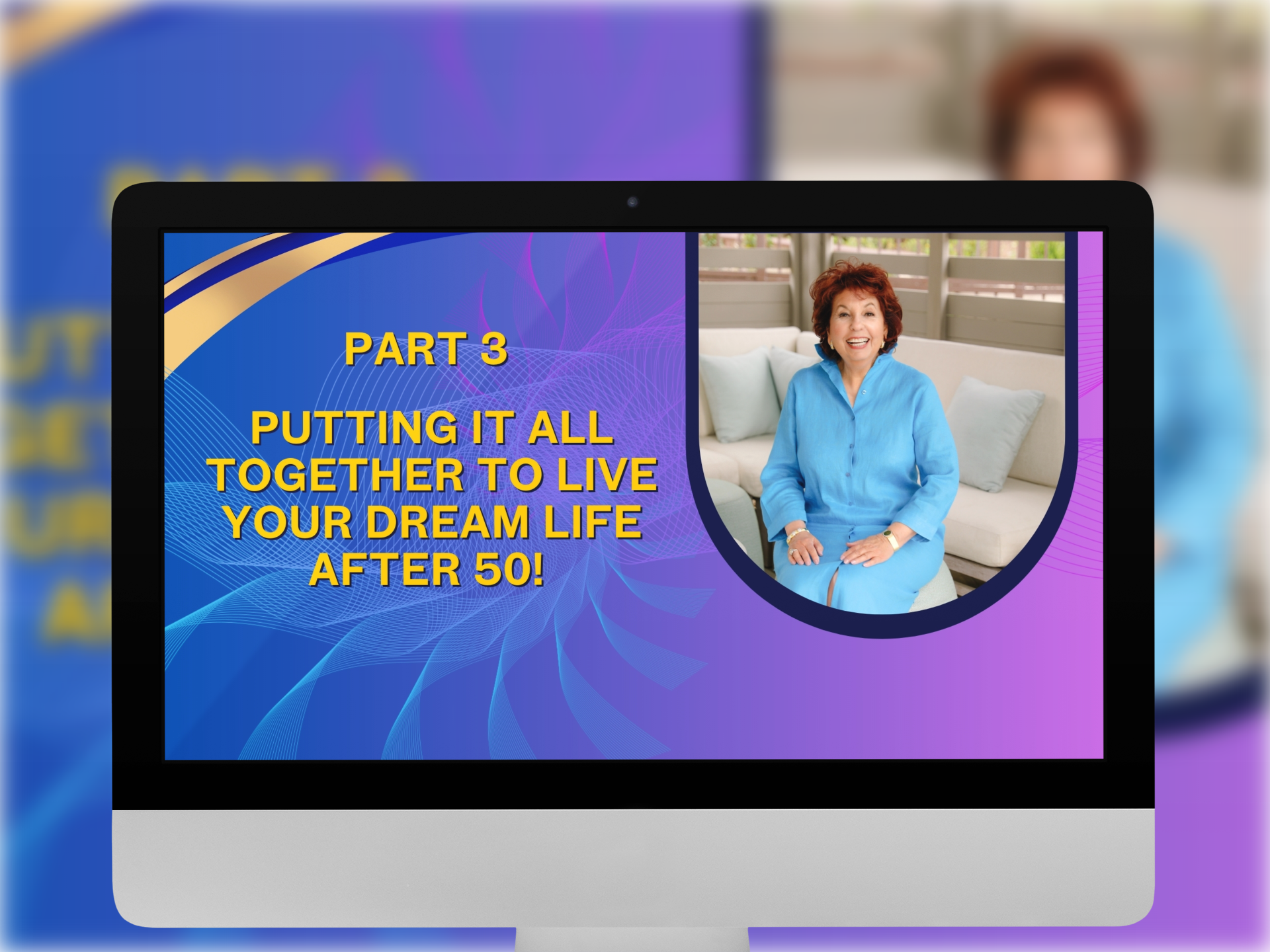 The full Introduction to "Create Your Dream Life After 50" will be emailed to you as a downloadable MP4 and the PowerPoint as a downloadable PDF, as my gift to you.