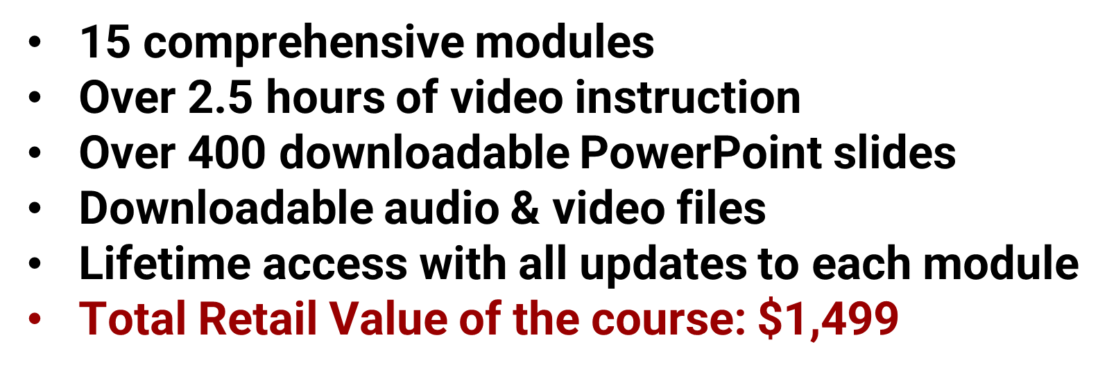 • (5) BONUS downloadable mini-course modules (over 120 pages)